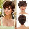 Synthetic Wig 12inch Pixie Cut Wigs For Women Hair Short Wigs With Bangs Black Mixed Brown Popular Fashion Heat Resistant Hairpieces