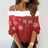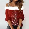 Women's Fashion Long Sleeve Strapless One Shoulder Christmas Printed Party Plush Neck Top