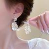 Taklit Kabuk Sarkan Küpe Beyaz Zirkonyum Çiçek Gelin Küpesi Kadınlar İçin Parti Aksesuarları