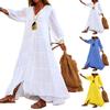 Women's Summer Solid Color Short Sleeved Button Up Lace V-neck Large Hem Dress