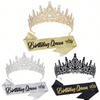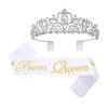 Yuvarlak Kristal Taç Balo Prensi Tiara Kurdele Kral Kraliçe Kurdeleli Taç Parti Dekorasyonu