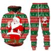 Kış Noel Erkek Kadın Kapüşonlular Set Streetwear Casual Kazak Takım Elbise Gevşek Koşu Eşofman 3D Baskılı Tişörtü + Uzun Pantolon