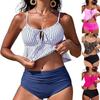 New Summer High Elastic Bikini Set with Blue and Pink Stripe Spliced Print Two Piece Set for Sexy Women's Beach Swimsuit S-6XL