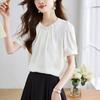 GMXIA Women's Summer White Short Sleeve Shirt Pressure Pleated Vintage Plate Button Chiffon Blouse Top