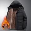 Men's Fall and Winter Thickened Long Warm Hooded Jacket Lined with Cotton Fluffy Warm Jacket Loose Plus Size Jacket