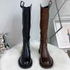 Autumn and Winter New round Head Thick Bottom Frye Boot Stretch Thin Boots Small Chunky Heel Tall Knight Boots Women