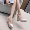 Retro Kadın Yüksek Topuklu parti ayakkabıları Zarif Bayanlar Takozlar Ayakkabı Marka Kadın Pompaları Platformu Kadın Kama Topuk 10 cm