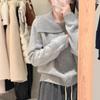 Women Grey Pullover Sweater Harajuku Korean Y2k Long Sleeves Peter Pan Collar Jumper Knit Sweaters Vintage 2000s Clothes Autumn