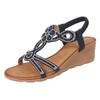European fashion wood beads rhinestone bohemian slope heel comfortable plus size sandals women
