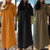 Rahat ve hafif pamuk karışımlı kumaştan üretilen bu uzun elbise, üzerinizden çıkarmak istemeyeceğiniz benzersiz bir konfor sunuyor. Gevşek versiyon tipi, figürünüzü güzelleştirirken aynı zamanda rahat bir uyum sağlar ve bu da onu çeşitli vücut tiplerine uygun hale getirir.