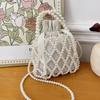 Vintage Top Handle Pearl Women Handbag Summer Hollow Out Beach Bucket Girl Shoulder Crossbody Bag
