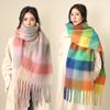 Kış Yeni Gökkuşağı Ekose Taklit Kaşmir Eşarp Çiftler İçin, Çok Yönlü Eşarp, Kalın ve Sıcak Şal