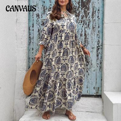 Yaz Kadın Elbise Büyük Beden Kısa Kollu Yuvarlak Yaka Bohem Plaj Elbiseleri