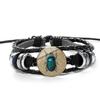 Mısır Böceği Vintage Bilezik Güç Sembolü Eski Mısır Punk Dokuma Siyah Deri Bilezikler Cam Düğme Bilezikler