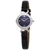 Stainless steel case with a blue leather strap. Fixed stainless steel bezel. White mother of pearl dial with silver-tone hands and diamond hour markers. Dial Type: Analog. Date display above the 6 o'clock position. ETA caliber F05.115 quartz movement. Scratch resistant sapphire crystal. Pull / push crown. Solid case back. Round case shape. Case size: 33.17 mm. Case thickness: 8.1 mm. Band width: 8.1 mm. Tang clasp. Water resistant at 50 meters / 165 feet. Functions: date, hour, minute, second, eol (battery end-of-life indicator). Additional Info: dial set with 12 top wesselton diamonds, 0.0361 ct, vs-si. Odaci-t Series. Dress watch style. Watch label: Swiss Made. Tissot Odaci-T Quartz Diamond White Mother of Pearl Dial Ladies Watch T133.210.16.116.00.