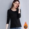 Kadın Termal Üstler Yuvarlak Yaka Uzun Kollu Kadife Astarlı Alt Üstler Slim Fit Düz Renk Sıcak Tişört