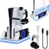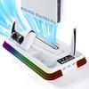 [ALL-IN-ONE PS55 COMPATIBLE COOLING STAND WITH RGB] Designed for PS5 compatible discs and digital versions, 2 built-in 3-speed aspiration cool fans, dual PS5 controller charging station with LED indicators, 8 RGB modes, 10 PS5 game stands, 3 2.0 USB ports, 2 settings buttons, USB-C cable, 2 Type- It comes with a C magnetic-dongle to cool the game console to make everything more tidy and ready at your fingertips, and a great present option for PS5 gamers.