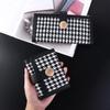 Women's Fashion Short Purse Houndstooth Wallet Zipper Coin Purse Snap Button Billfold Pu Leather Card Holder