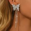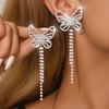 Europe And The United States Style Shiny Rhinestone Bow Shape Earrings Tassel Long Earrings Female Senior Sense Of Temperament Earrings 1 Pair
