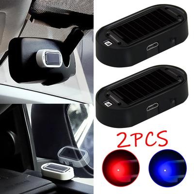 2pc Car Solar Powered Fake Security Light Simulated Dummy Alarm Wireless Warning Anti-Theft Caution Lamp Flashing Imitation Lamp