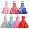 1950S Women Pink Plaid Sleeveless Dress Lace up Bowknot Halter Hidden Zipper Skater Hem Cocktail Party Swing Dress High Waist A Line Dress