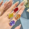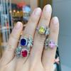 Paraiba Electroplating Simulation Pink Zircon Ring Female Square Golden Zircon Socialite Open Ring