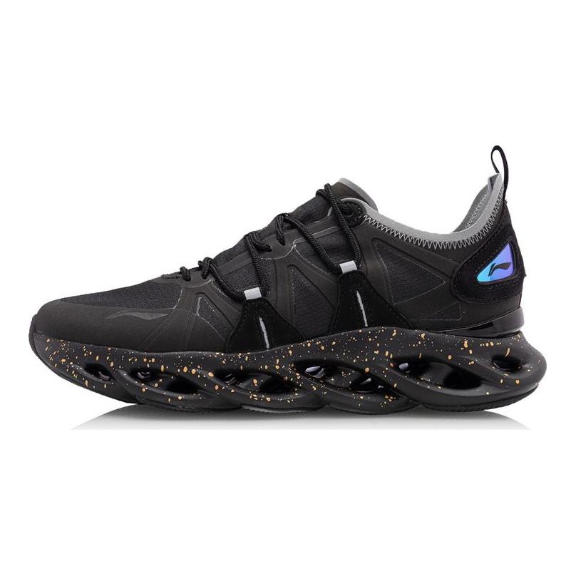 Li Ning Arc Shock Absorption Non-Slip Wear-Resistant Low-Top Running Shoes Men Running Shoes Black Blue ARHQ057-1