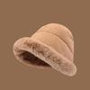 Sonbahar ve Kış Kadın Kova Şapka Kalınlaştırılmış Yün Sıcak Şapka Yuvarlak Üst Geniş Kenarlı Şapka Saf Renk Rüzgar Geçirmez Şapka Giysi Aksesuarları