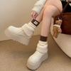 Autumn and winter wool mouth short boots women's Korean version thick heel thick sole knitted short boots thermal velvet cotton leather boots