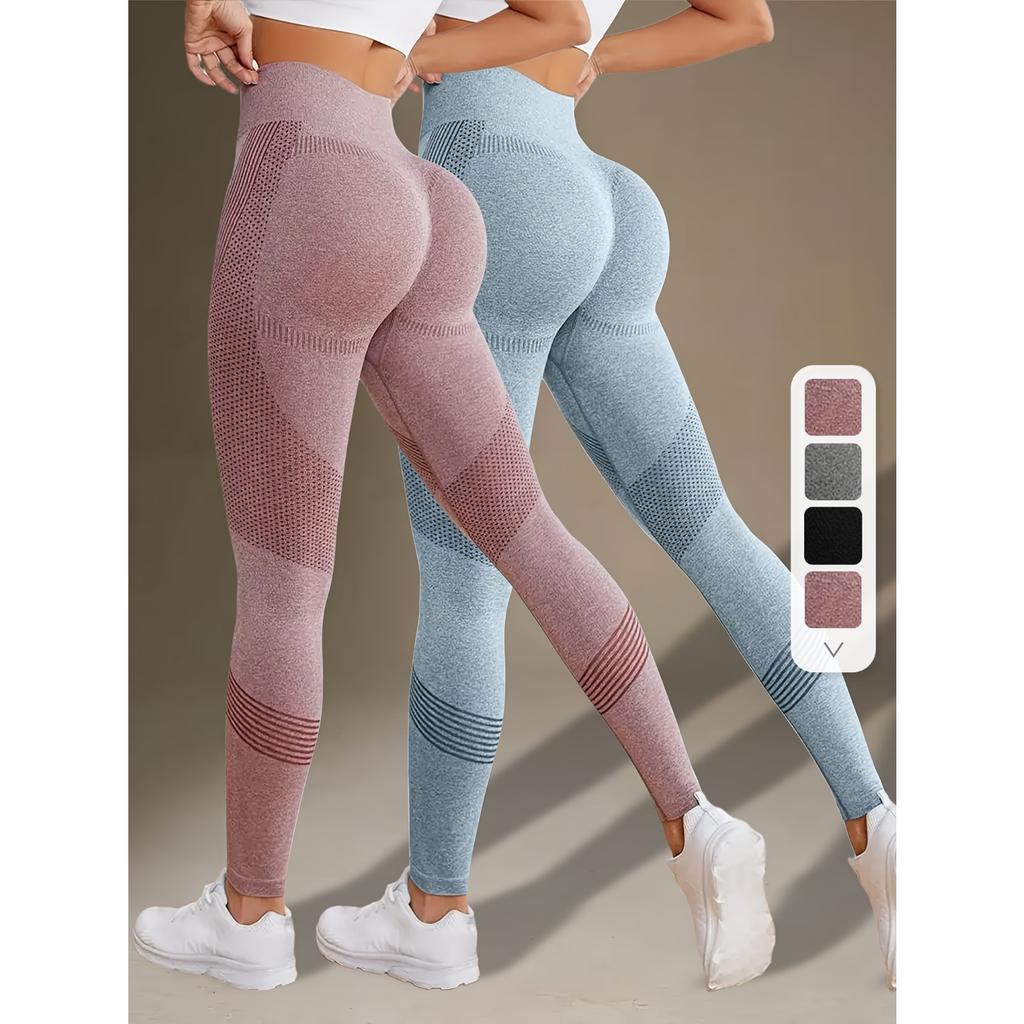 2 Adet Düz Renk Fitness Yoga Spor Taytı, Yüksek Esneklikli Karın Kontrolü Yoga Taytı, Kadın Spor Giyim