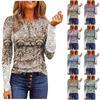 Kadın Yuvarlak Yakalı Düğmeli Sonbahar Slim Kademeli Geçiş Baskılı Dikişli Dantel Uzun Kollu Üst