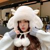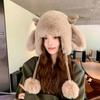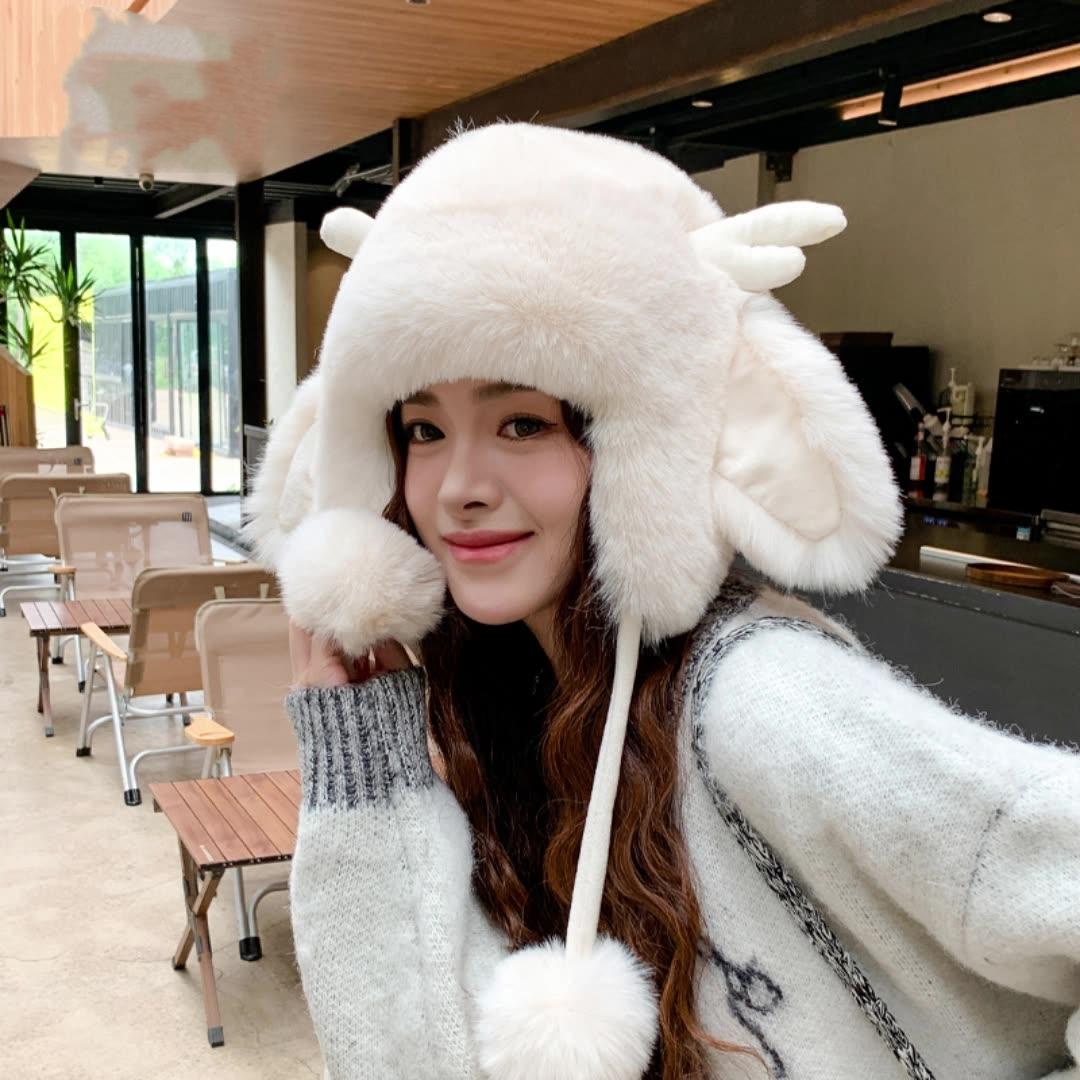 Women Autumn Winter Warm Thicken Ear Protector Hat Cold Plush Velvet Outdoor Antlers Knitted Bomber Cap Sweet Cute Lei Feng Hats