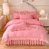 Yıkanmış Pamuklu Dörtlü Set Prenses Rüzgar Dantel Yatak Eteği Yorgan Örtüsü Çarşaf Düz Renk Cilalı Yatak Takımı
