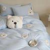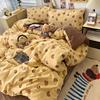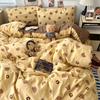 Cute Bear Washed Cotton Bed Four-piece Set Soft Skin-friendly Yellow Quilt Cover Bed Sheet Three-piece Set