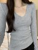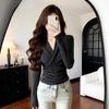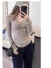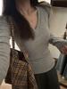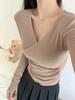 European Small Shirt Pink Cross V-neck T-shirt Women's Autumn and Winter New Versatile Chic Slim Long-sleeved Bottoming Top