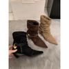 Sheepskin Version Retro Rivet Flat Bottom Short Tube Western Cowboy Boots Women's Short Boots Stacked Martin Boots