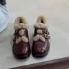 2023 kış kadın peluş sıcak deri ayakkabılar kar botları İngiliz tarzı kemer tokalı Bayan gündelik siyah loafer'lar