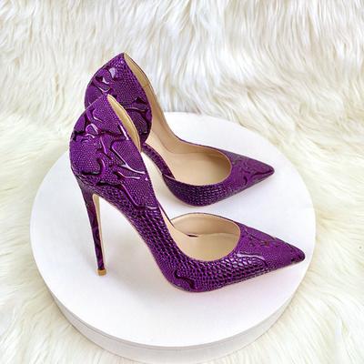 New Fashion Purple Round Toe Women Pumps Thin High Heels 10cm /12cm Heeled Pointy Toe Slip On Shallow Dress Shoes Woman 35-45