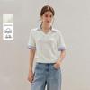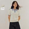 Kadın Örgü 2024 Yaz Yeni POLO V Yaka Kontrast Renk Kısa Kollu Örgü Kazak İnce Kısa Üst