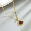 Yeni Tek Taraflı Doğal Oniks Dört Yapraklı Yonca Kolye, Titanyum Çelik Moda Solmayan Kolye, Köprücük Kemiği Zinciri, Boyun Zinciri, Takı.