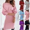 Women's Casual Fashion Sexy Round Neck Long Sleeve Waist Solid Color Dress
