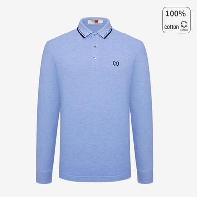 FILA Solid Color Golf Knit Long Sleeve Polo Shirt Men tops Porcelain-Blue A11M345206F-BU