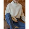 Kazak Kadın Yarım Balıkçı Yaka Kazak Kazak Günlük Bol Örgü Düz Uzun Kollu Kazak Kazak Kadın
