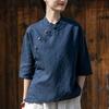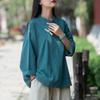 Kadın Vintage Pamuk Keten Gömlek ve Üstleri Standı Uzun Kollu Bahar Çin Tarzı Düğme Gevşek Bluz Gömlek