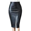 Lady Midi PU Skirt Women High Waist Sheath Slim Fit Skinny Faux Leather Split Hem Knee Length Solid Color Skirt Plus Size