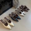 fashion Fashion Women Slides Slippers Pointed Toe Summer Outside Mules Shoes Thin Mid Heels Black White Silver Gold Sandals Office Pumps