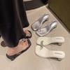 fashion Open Toe Women Slides Slippers Summer Outside Thin High Heels Patent Leather Crystal Dress Shoes Stiletto Pumps Silver White 39