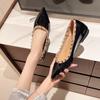 Fashion 2024 New Lady Flock Winter Flats with Studs Pointy Toe Black Shoes for Wide Feet Arrivals Fashion American Style Slip-Ons