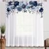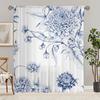 2 Pieces HD Digital Blue Rose Gold Leaf Printed Window Valance Home Decor Style Decoration Living Room Bedroom Rodding Curtain E