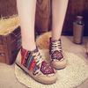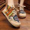 2024Kadın Ayakkabıları Boho Pamuk Keten Kanvas Tek Ulusal Dokuma Yuvarlak Burun Bağcıklı Kumaş Ayakkabı Kadın Düz Ayakkabılar Beden 35-40